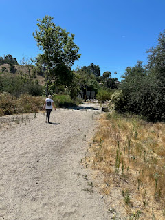 Adventure, curiosity, and some trail lessons filled Barbara's and my first visit to this stunning riparian woodlands in Sunland. In 1978, LA County Parks & Rec acquired the 13 acres that make up the Wildlife Sanctuary in an effort to replace the wildlife habitat displaced when construction on the Foothill Freeway (210) tore through the natural wildlife corridor moving south from the San Gabriels. West of the sanctuary in 1998, the LA Flood Control District acquired another 210 acres as mitigation for the damage and to replace wetlands destroyed by the 210 construction. The result? The most stunning acreage of dense willow and cottonwood riparian woodlands in the county. A short, 2.1 mile hike, we left earlier than usual to dodge the heat. Arrived at the trailhead at 8:20, and all was well until 10 when temps rocketed. The first half of the hike was a challenging mix of dirt trails, mud trails, rock bed trails. While there were very few wildflowers, the woodlands and chaparral stood gorgeous. We hiked under quaking aspens, stood under seeding chaparral yucca, then hit a spot on the trail lush with unfamiliar tall greenery with wiry stems. We usually do a name search but this time we didn't and found out fast when, as we parted stems blocking the trail, the stinging nettles attacked and OUCH. My fingers still sting! About a third of the way in the trail followed a chain fence separating the habitat from the sanctuary. Around a curve the two Tujunga Ponds came into view. Ducks, baby ducks, and a couple of different water birds rested in ponds surrounded by bulrush. We stopped for a quick water and snack break. then moved ahead, finding out that the trail around the second pond was a stream! We edged between the pond and bulrush and the stream in the mud along the bank. Four women on horseback (surprised to see us slogging through the mud LOL) came up the stream, assuring us that the water was, at best, ankle deep. Well yeah we kept going! We passed the ponds and turned south for the return trail at around 10, and the heat hit hard. Part of our return trail was another stream, but deeper, and the plants lining the bank that we needed for support were....nettles! Had to backtrack, adding another .4 miles to the hike. Found an off-route trail with a makeshift bridge over the stream that reconnected us to our route and the trailhead. The hike is gorgeous, unusual, and adventurous. Not recommended after a rain, and you definitely need a reliable trail tracker like AllTrails to follow. The trails are not marked and a few of the spots weren't trails at all. A horse would work! Memorable hike.