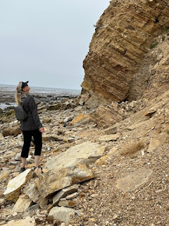 Barbara's and my fifth different hike along the Rancho Palos Verdes shoreline was short (2m-ish) and straightforward (out, down, back, up) and one gorgeous, rock-scrambling challenge. Part of the 1400-acre Palos Verdes Nature Preserve, a protected home for rare and threatened wildlife, this hike covers a mile of shoreline in the Rancho Palos Verdes Ocean Trails Reserve, preserved land restored with 250,000 local native plants as a habitat for the endangered cactus wren and California gnat catcher. Plants like the sparkly Common Iceplant line the trails on the bluff, the first mile of the hike. Down at shore level there was nothing but rocks and boulders. Fortunately, coastal fog kept the temps cool as we balanced our way up the coast rock by unstable rock. If you like a good balance challenge, you'll love this hike. Just be sure the tide is out because to the left of the shoreline it's all Pacific and tide pools, and to the right of the shoreline it's nothing but a sheer boulder wall, straight up. The hike starts off the public parking lot for the Trump Golf Course—the hike is not on course property, (although you can't miss the 70-ft flagpole towering over the course.) A quick trek through a manicured lawn leads to the Catalina Trail, the first half of the hike. Stunning views to the east and west along the shoreline, despite the coastal fog. From the Catalina Trail we switch-backed down the Dudley Trail to the shore and the balancing act began. The rocks and stones were collectively cool—different layers of colors, different sizes, flat, cut, smooth—so pretty. At one point we walked tight to the boulder wall, close enough to note a layer (like the filling in an Oreo cookie) of crystal strips in the stratification that had to be a billion years old! Curving the shoreline, we reached Rancho Palos Verdes Beach where we connected to Sunset Trail and switch-backed our way back up to the top. Found our way back to the car just as the sun broke through. Stunning hike, but the shoreline is only for the surefooted.